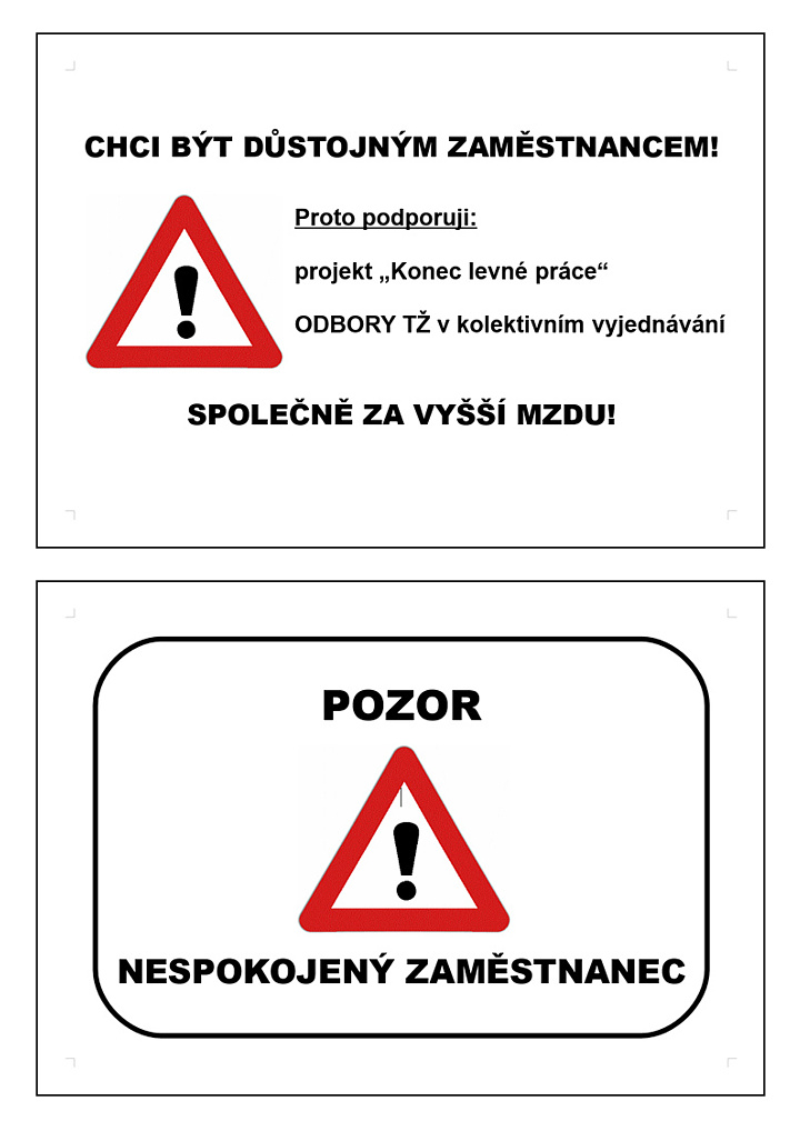 Dále pak zaměstnanci svoji nespokojenost vyjadřují zveřejňováním letáku „Pozor, nespokojený zaměstnanec”. Pokud tedy na tento leták narazíte, budete vědět, čeho se týká.